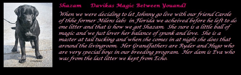 Davikas labs has been caring for labs since 1992. We specialize in Black Labs, Yellow Labs, Fox Red Labs and Chocolate Labs. NH Labrador Retriever Puppy Breeder: Kate Champney Epsom New Hampshire I prefer initial contact via e-mail and if we are mutually interested in further discussions we can talk on the phone. mailto:champlab@gmail.com All photos on this site are the property of Kate Champney Unauthorized use is prohibited |